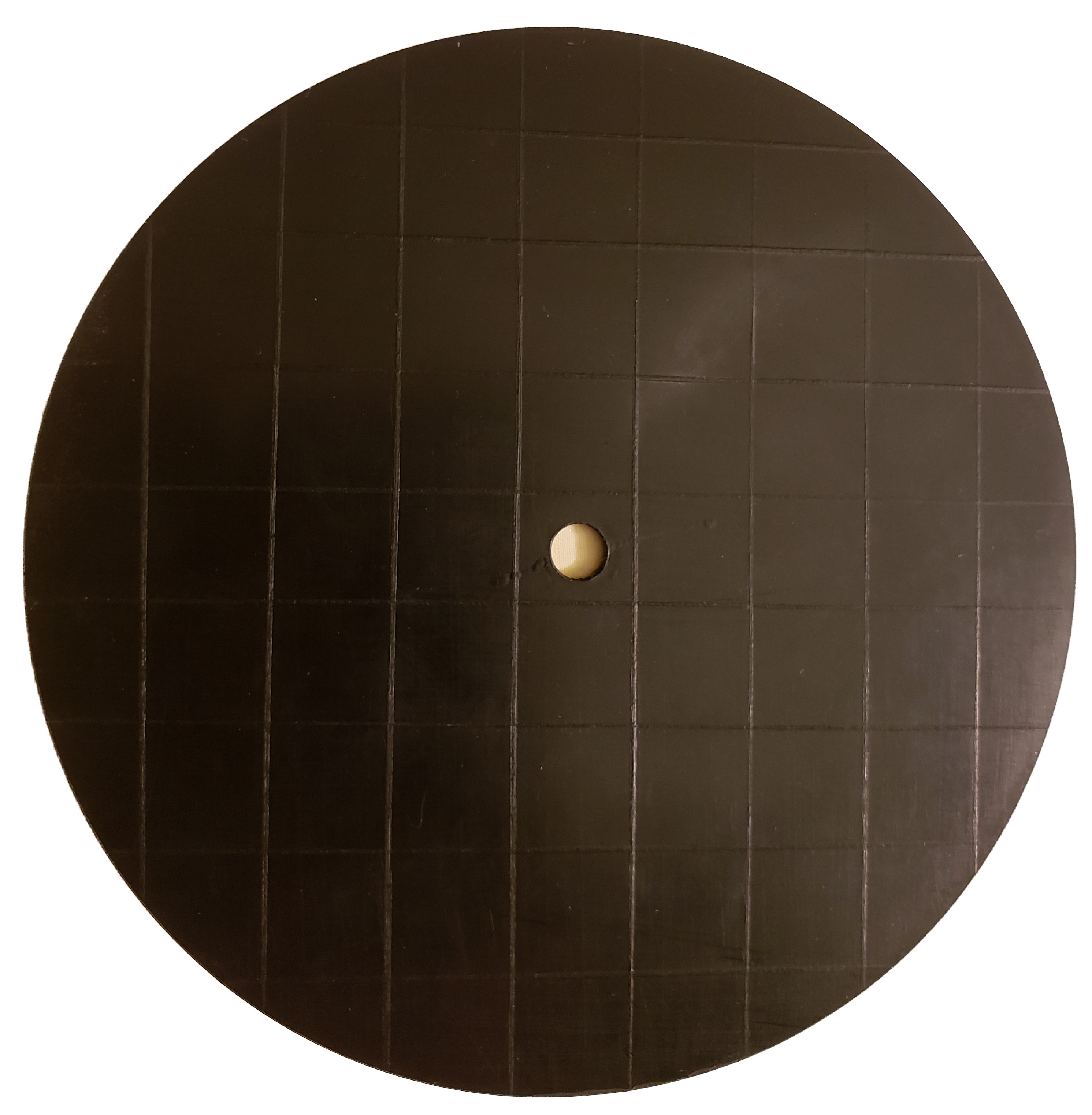 The records in the first nine volumes were single-sided with designs on the back. -The first volume was issue in two editions. -One edition, which I believe was the very first book created, was not as tall as the other books, with records that were only 5½ inches, like Little Wonders. -The records in this edition used the actual Little Wonder label, were numbered 0257 through 0259, and had a grid etched on the back (see left). -It is possible that these records were part of (perhaps the end of?) the small series of Little Wonder records Columbia produced in Italy that used the Little Wonder label and had their own numbering system; these numbers are not included in the Italian Little Wonder catalogue, which intriguingly lists records up to 0256. -(See the Label page for examples of all the Piccola Meraviglia and Libro Che Canta labels discussed here.)