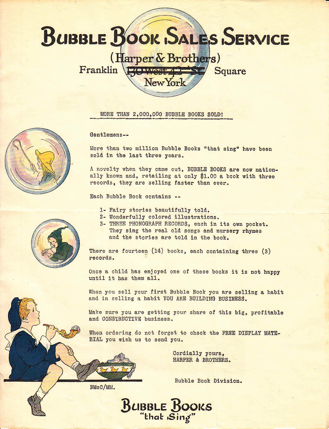 Bubble Books and were sold for $2.00 (see description at left on glassine paper;