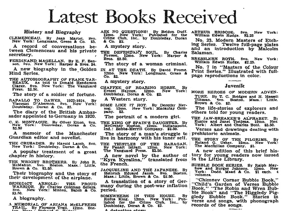 in partnership with Dodd, Mead and Company (see announcements in the New York Times