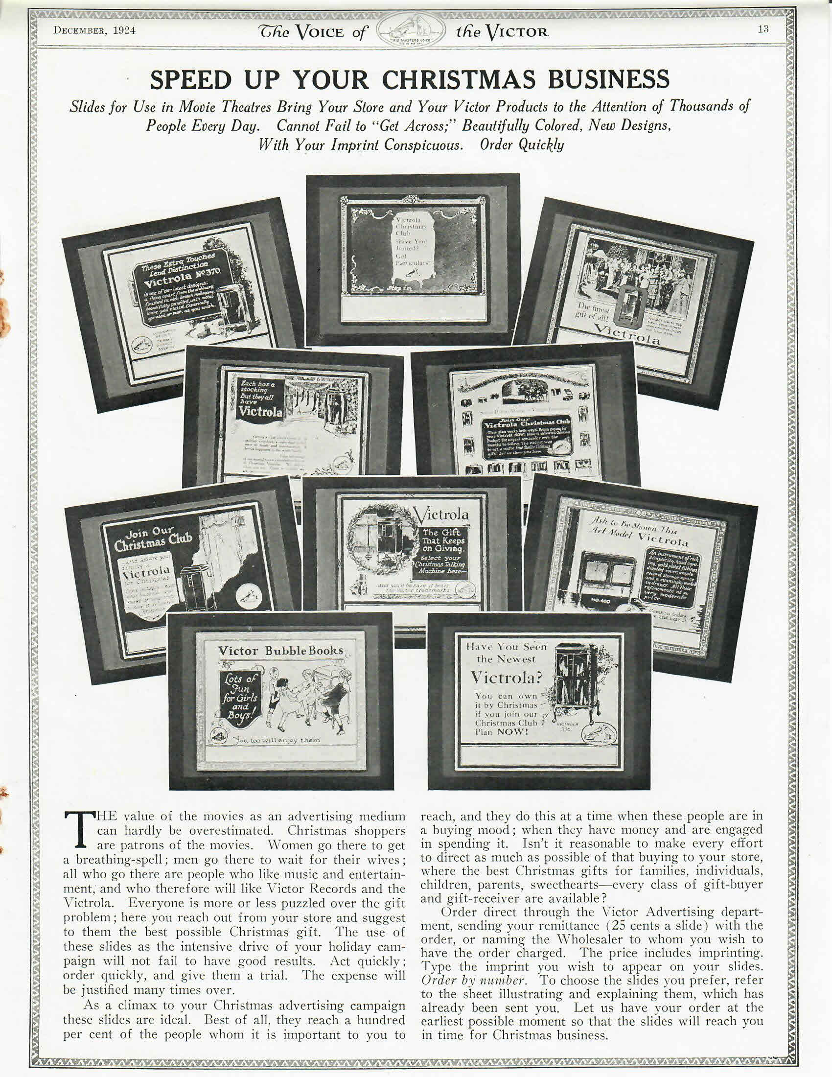 to dealers about how to decorate their windows and use specially customized slides to advertise in movie