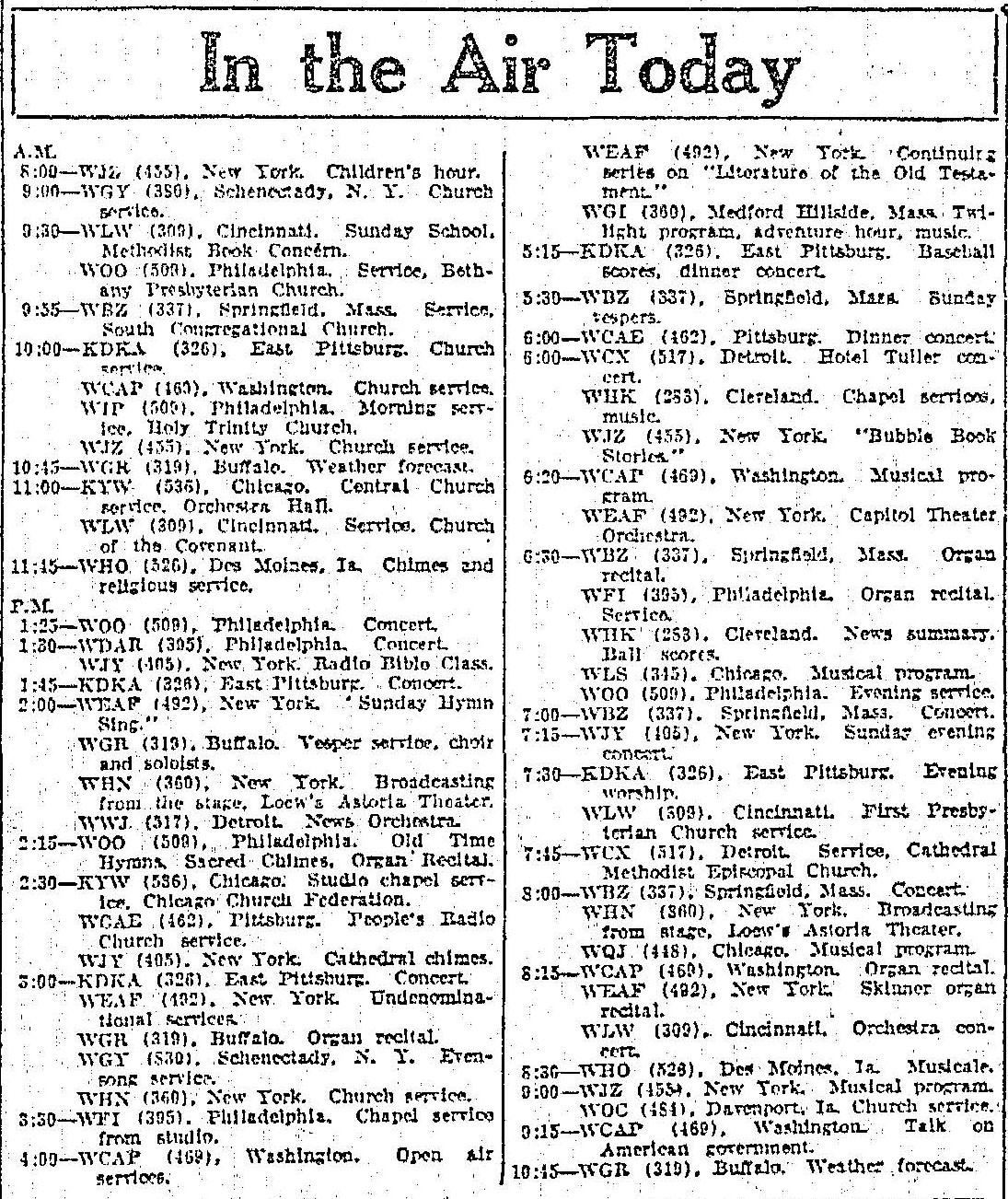 WJZ radio program listing for